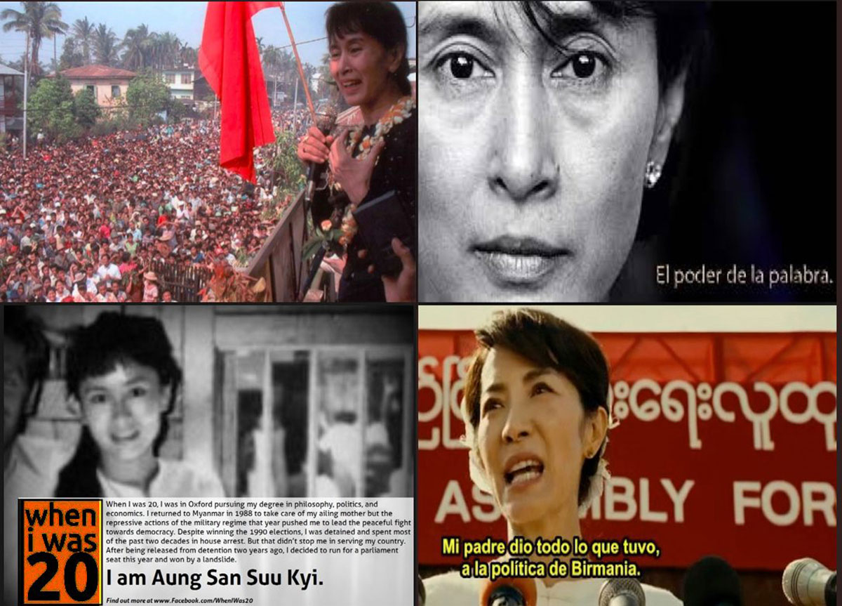 Estuvo en la cárcel y en arresto domiciliario durante mas de 15 años. La dictadura militar la liberó el 13 de Noviembre de 2010 tras las presiones internacionales. La recibieron 3.000 personas en la puerta de su casa. Es la esperanza de la democratización de su país.